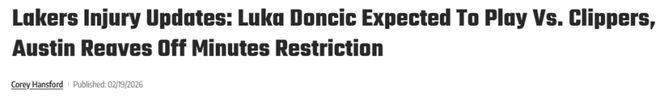 - 湖人全員健康出戰(zhàn)快船!東契奇正式復(fù)出 里夫斯解除上場(chǎng)時(shí)間限制